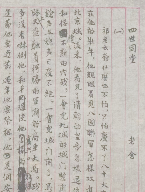 《四世同堂》是老舍先生的經(jīng)典長(zhǎng)篇小說(shuō),一部百萬(wàn)字的巨著,小說(shuō)以恢宏的敘事與地道的“京味”城市書寫,幾乎復(fù)原了老北平的民俗畫卷,有記憶中的家國(guó)安寧、人情醇厚,也有現(xiàn)實(shí)的仇寇鐵蹄、遍地血雨,書寫了抗日戰(zhàn)爭(zhēng)時(shí)期北平淪陷后普通百姓的生活,寫盡了復(fù)雜人性。