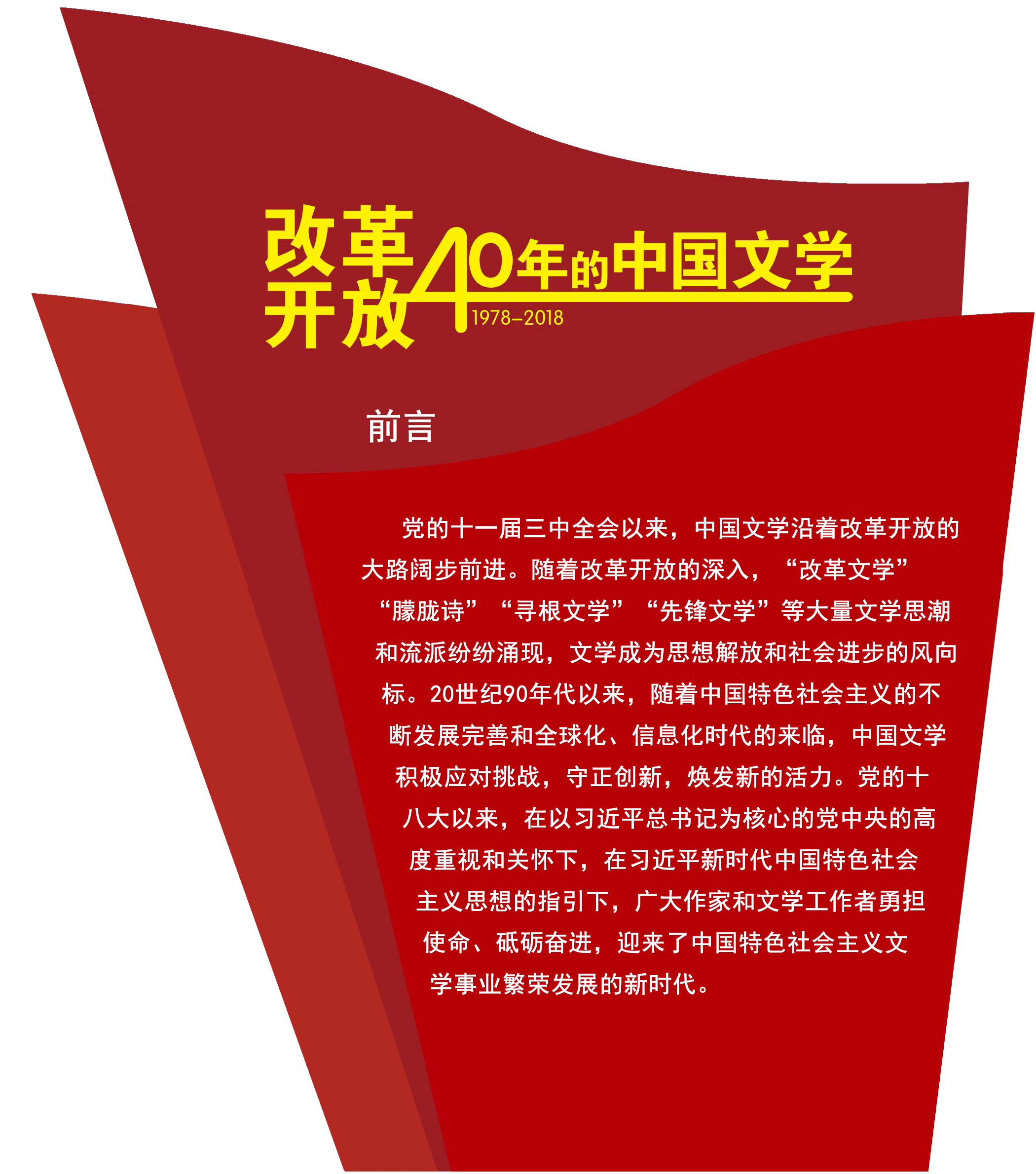 改革開放40年,是當代文學加快自我更新和發(fā)展腳步的40年。中國作家置身全球化背景和現(xiàn)代化進程,在外來文藝思潮此起彼伏、文學觀念不斷更迭中大膽“拿來”,勇于探索,在不斷創(chuàng)新、汲取營養(yǎng)中又能夠始終立足本土站穩(wěn)腳跟……