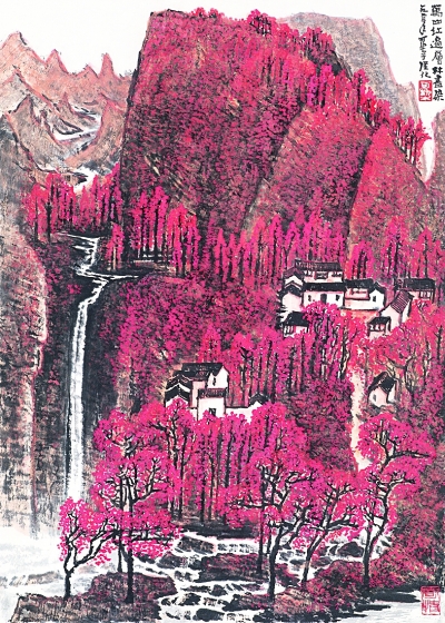 在父親個(gè)人的山水畫創(chuàng)作乃至中國(guó)山水畫的發(fā)展歷程中,《萬山紅遍》都被視為極具個(gè)人風(fēng)格的作品。父親并未用過去畫作的程式去表現(xiàn)一個(gè)新的題材,而是根據(jù)新的題材去發(fā)現(xiàn)、探索一種新的表現(xiàn)語(yǔ)言和畫面結(jié)構(gòu)。正如父親提出的“可貴者膽,所要者魂”,“膽”是大膽嘗試和突破的創(chuàng)新之“膽”,“魂”是創(chuàng)作者悉心感受和凝精聚神之“魂”。父親一直在探索山水畫表現(xiàn)的新的可能性,不斷拓展著傳統(tǒng)山水畫所表現(xiàn)的內(nèi)容、力度與深度。
