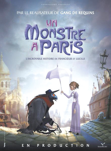將以上的見(jiàn)聞和故事作為原料,再輔以浪漫之都巴黎的背景,這就是動(dòng)畫(huà)片《怪獸在巴黎》的初始原型。電影放映員埃米爾陪同死黨拉烏爾給科學(xué)家送腐殖土,外出的科學(xué)家留下一座長(zhǎng)滿奇異植物的陽(yáng)光玻璃房,和一只給他看家、會(huì)用字卡與人溝通的猴子。拉烏爾嘗試了各種實(shí)驗(yàn)藥水,并且毫無(wú)懸念地釀成了一場(chǎng)玻璃房中的化學(xué)大爆炸。埃米爾的攝影機(jī)記錄下了一切:在這場(chǎng)爆炸后,誕生了一個(gè)雙眼通紅的巨型怪獸。