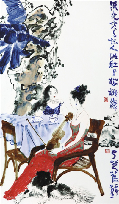 李菊生畫“姑娘追”,畫女人的漂亮,畫男人的瀟灑,畫美也畫“拙”“丑”“壞”。李菊生說(shuō)“拙”是一種大巧。老子說(shuō)“大巧若拙”,是一種“巧”的變形、抽象和夸張?!俺蟆薄吧薄薄皦摹币彩呛裰刂?,陳釀烈酒的甘醇?!皦摹笔锹斆?、智慧、幽默、詼諧的外表?!俺蟆笔且环N微醺之美,熟透了的美?!俺蟆薄皦摹钡拿琅c真正的丑、真正的壞只有一紙之隔,但卻有本質(zhì)的區(qū)別。