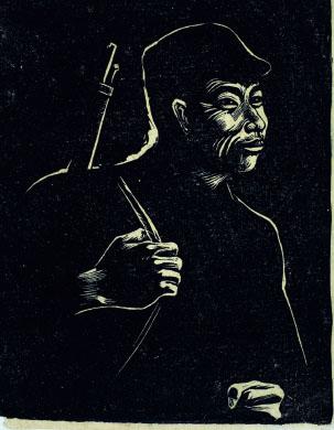 “走向自由”是古元走上藝術(shù)道路之后創(chuàng)作的第一套木刻連環(huán)畫(huà),主人公的原型是護(hù)送古元自西安奔赴延安的一位八路軍戰(zhàn)士,講述的是出身雇農(nóng)的“他”飽受地主壓榨、資本家剝削、日寇侵略等悲慘的遭遇之后,參加抗日軍隊(duì)蛻變成一名革命戰(zhàn)士的故事,雖然這套作品在創(chuàng)作手法上仍受西方版畫(huà)的影響,但在創(chuàng)作主題上卻隱藏著古元親身的經(jīng)歷與思想蛻變的過(guò)程。古元出生于廣東沿海地區(qū)的一個(gè)巴拿馬歸僑之家,自幼接受的是“和氣致祥百忍成金處世端資退讓?zhuān)竦螺d福惟善為寶持身貴養(yǎng)謙光”的家學(xué),青年時(shí)期的古元出于內(nèi)心中對(duì)自由的理解和向往,只身奔赴千里之外的革命圣地——延安。在那里,他用木刻真實(shí)地再現(xiàn)了抗日戰(zhàn)爭(zhēng)時(shí)期抗日部隊(duì)和敵后民眾樸實(shí)的戰(zhàn)斗與生活。在烽火年代中,他憑借對(duì)抗戰(zhàn)勝利和民族解放的崇高信仰,以木刻為武器,用一幅幅版畫(huà)去鼓舞廣大民眾實(shí)現(xiàn)抗日救亡的理想。如果說(shuō)人生需要一個(gè)態(tài)度,藝術(shù)需要一種精神的話,那么“走向自由”無(wú)疑是對(duì)古元藝術(shù)人生最真實(shí)的寫(xiě)照。