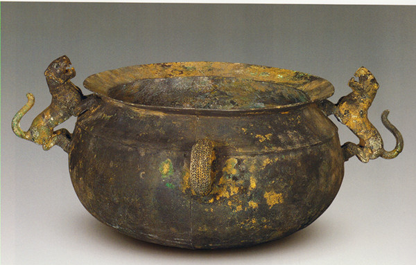 第二,在這一地區(qū),具有自身特點的青銅器以兵器和裝飾品為主,有一定數(shù)量的青銅容器,但少見大型禮器,樂器不發(fā)達但各具特征??赡芎彤敃r不同族群之間復(fù)雜的矛盾有關(guān),青銅文化遺存中,最典型的器類就是兵器和裝飾品,幾乎幾個小區(qū)域都是這樣,顯示出當時活躍在這一地區(qū)的“夜郎”等西南夷諸族群尚武而愛美的文化特質(zhì)。相反,作為中原地區(qū)青銅文化象征的青銅禮器卻在這一地區(qū)始終未發(fā)展起來,我們雖然也在一些地區(qū)發(fā)現(xiàn)較大型的青銅器如鼎、簋、壺、釜、洗(赫章可樂、威寧中水和曲靖盆地均有出土)等,但數(shù)量少而單一,而且極有可能是從外面?zhèn)魅牖蚴钱數(shù)胤轮频臇|西,不構(gòu)成該地區(qū)青銅文化的主體。