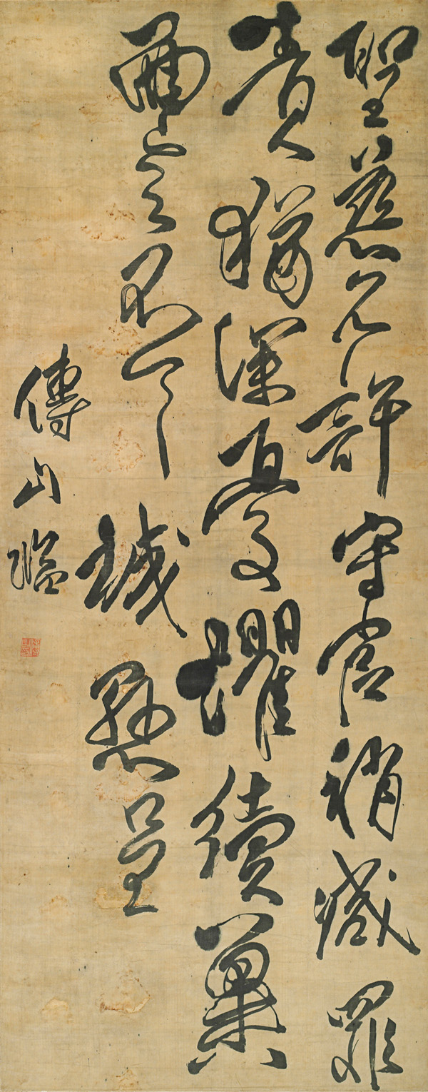 傅山作品,草書臨柳公權(quán)《圣慈帖》軸