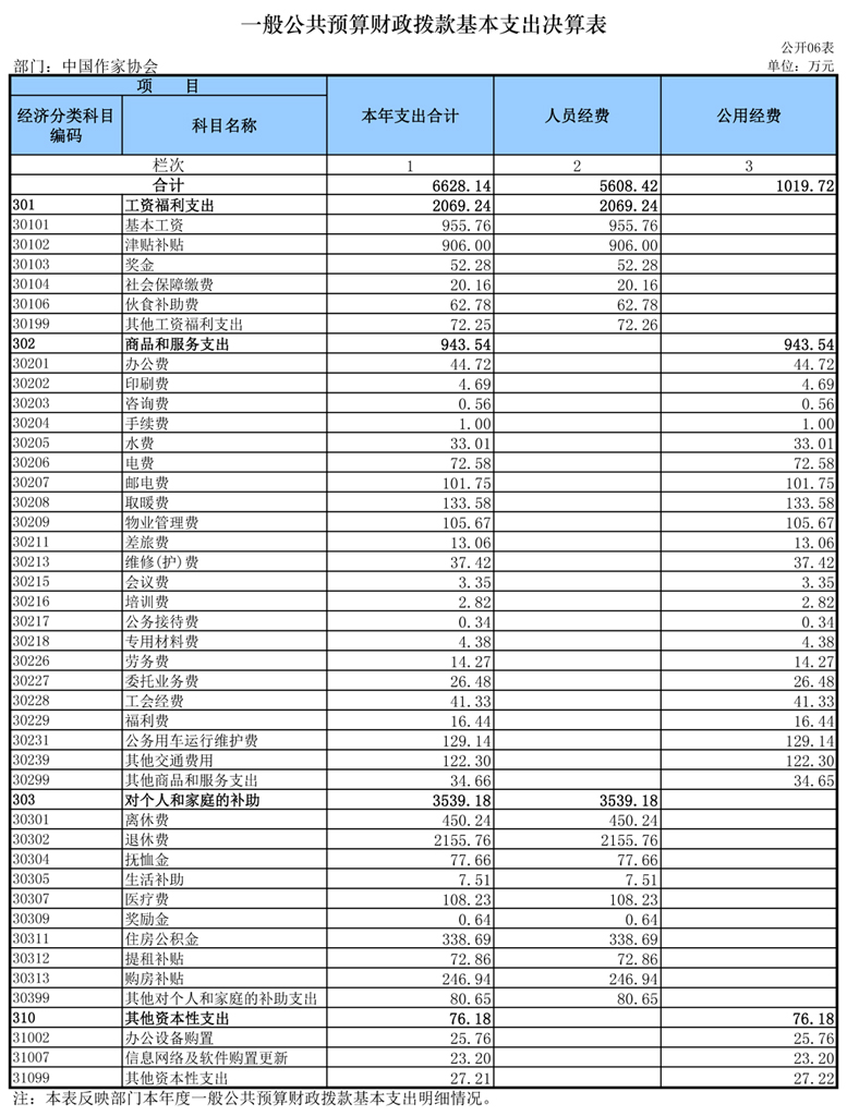 中國作協(xié)2015年度財(cái)政撥款基本支出6628.14萬元,其中: