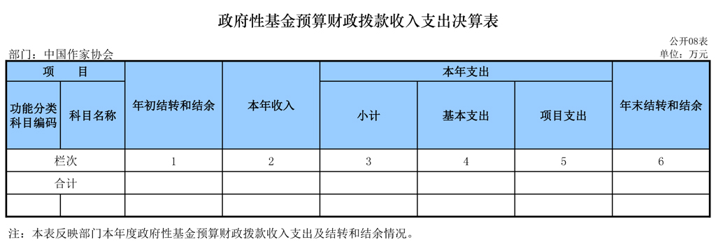 中國作家協(xié)會2015年無政府性基金預(yù)算財(cái)政撥款收支。