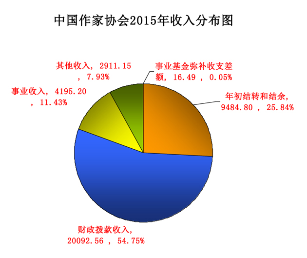 2015年中國作家協(xié)會總收入36700.19萬元,其中: