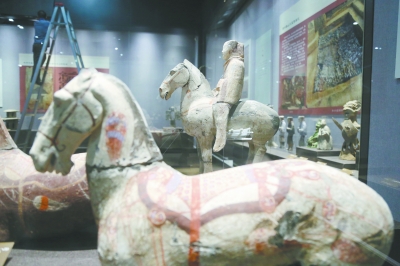 “山東地區(qū)兩漢文明展”展出的“彩繪白陶馬”。 山東博物館供圖