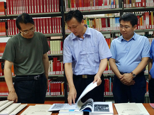 何建明代表中國作家出版集團(tuán)向中國井岡山干部學(xué)院贈(zèng)送了文學(xué)圖書。