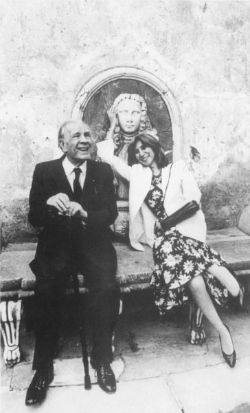 1970年代末,博爾赫斯和瑪麗亞??jī)河裨谖魑骼镉螝v。資料圖片