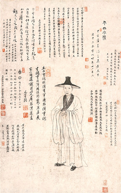 這幅《個山小像》不僅展現(xiàn)出八大山人的“身份照”,更通過四首自題詩和友人的三處題跋,明確透露出他明宗室身份,詳細敘述了八大山人的人生遭遇和進入佛門的經(jīng)歷。