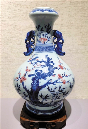 楊衛(wèi)告訴記者,青花釉里紅出現(xiàn)于元代,無(wú)論從傳世數(shù)量、工藝難度、創(chuàng)燒時(shí)間及裝飾效果來(lái)看,青花釉里紅的技術(shù)含量最高,相較于青花的淡雅、釉里紅的熱烈,青花釉里紅則兼具二者之美,形成青紅相間、冷暖對(duì)比、動(dòng)靜相宜的審美特征,彌足珍貴,讓自己很癡迷。