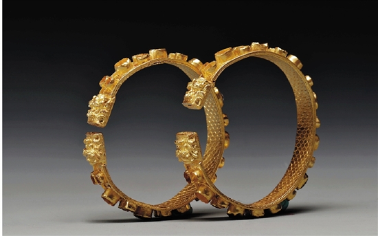 金鑲寶龍首手鐲