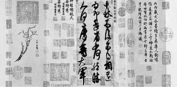 關(guān)于《中秋帖》的鑒藏和傳世,還有頗多曲折的故事。此帖卷后有明董其昌、項元汴,清乾隆題跋,其中附乾隆皇帝、丁觀鵬繪畫各一段。卷前后及隔水鈐有宋“宣和”內(nèi)府、南宋內(nèi)府,明項元汴、吳廷,清內(nèi)府等鑒藏印。足可見此帖曾經(jīng)宋代宣和、明項元汴、清內(nèi)府收藏。民國時,溥儀將其攜出宮外,流散民間。