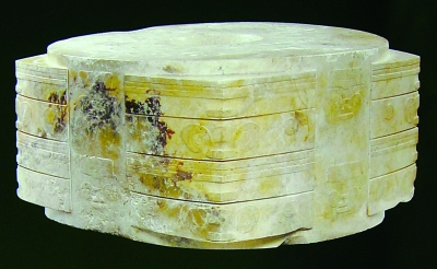 良渚文化的史前先民則用玉琮(下圖)的平面形狀作出了回答。張光直先生認(rèn)為玉琮的內(nèi)圓外方是象征了古人的天圜地方、上下貫通的天地觀。紅山文化晚期的牛河梁遺址“積石冢”又是一例。積石冢主要部分為2座三環(huán)石壇。據(jù)學(xué)者考證“三環(huán)石壇”的實測直徑與《周髀算經(jīng)》蓋天圖式的數(shù)據(jù)一致。