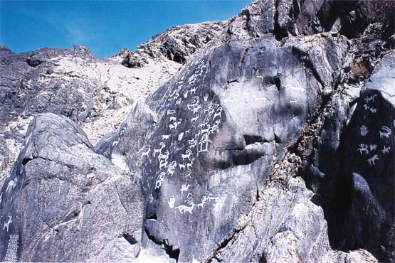 新疆且末縣莫勒恰河?xùn)|岸的昆侖山巖畫