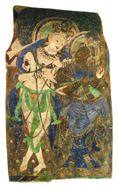 克孜爾石窟第八窟前壁壁畫中彈奏五弦琵琶的伎樂天人