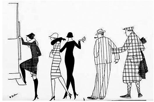 福克納12歲就開始學(xué)習(xí)畫畫,19歲時便為密西西比一家當(dāng)?shù)匚膶W(xué)雜志《老密西》(Mississippian)畫插圖,一直畫到28歲。??思{的繪畫風(fēng)格獨特,像時裝畫,又有點漫畫風(fēng)格,頗為時髦。一組標(biāo)題為《爵士年代》(Jazz Age)的插畫便展現(xiàn)了??思{細(xì)膩的筆觸與獨特的風(fēng)格與驚人的繪畫天賦。