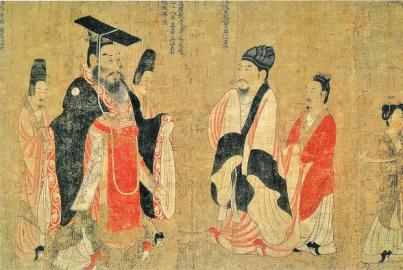 從畫(huà)像來(lái)看,雖仍有程式化的傾向,但在人物個(gè)性刻畫(huà)上表現(xiàn)出很大的進(jìn)步,不落俗套,而顯得個(gè)性分明;畫(huà)中按等級(jí)森嚴(yán)的封建倫理觀念,處理人物的大小?!稓v代帝王圖》用重色設(shè)色和暈染衣紋的方法,有佛教藝術(shù)的影響。