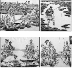 在小學(xué)課本中,有一個真實的故事。故事的名字就叫做《金色的魚鉤》。在中國人民革命軍事博物館的展廳中,不僅有紅軍“過草地”時的模擬景象,也有一組插畫專門講述了這枚“魚鉤”的故事。