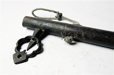 “秤”是市井生活中最常見不過的物品,鬧市中的喧囂與你來我往間的“斤斤計較”讓不少保存至今的秤桿被“生活”磨損得少了美感。而丁英俊在??诒镜厥盏玫倪@桿老秤品相、造型都流露著幾分美意,精致的細(xì)節(jié)也不難讓人看出當(dāng)年優(yōu)良的制造工藝。據(jù)介紹,這桿約1米75長的秤桿由鐵力木制成。其前段由銅包裹,在秤的鐵鉤上方,六瓣花狀結(jié)構(gòu)玲瓏有致。當(dāng)鐵鉤上掛上物品時,在秤砣的配合下,“花”下端的準(zhǔn)星會與中間的準(zhǔn)星對準(zhǔn),以此實現(xiàn)計量。