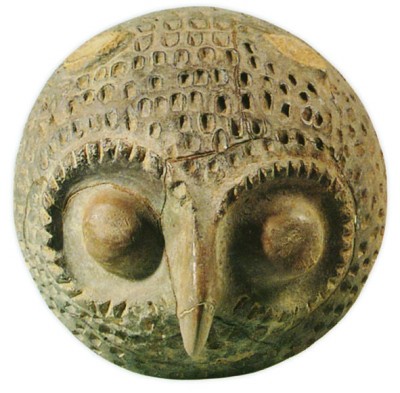 從遠(yuǎn)古時(shí)期開始,直到商代,鴟鸮都被視為神鳥。北京大學(xué)賽克勒博物館就藏有一尊新石器時(shí)代的半球形陶鸮,原始時(shí)期此類圓雕通常都是祭祀對(duì)象或神祇;殷商時(shí)期,中原地區(qū)出土了大量以鴟鸮為表現(xiàn)對(duì)象的擬形青銅器、玉器,有些學(xué)者甚至提出籀文體“商”字(商代的國號(hào))也是鴟鸮面部的正面寫照,可見鴟鸮所扮演的重要角色。對(duì)此,學(xué)者們提出至少有三個(gè)理由可以進(jìn)行解釋:其一,鴟鸮是一種猛禽,在軍事領(lǐng)域被視為吉祥物;其二,鴟鸮活動(dòng)于夜間,是為夜神或夢(mèng)神;其三,鴟鸮是祖先神,中國社會(huì)科學(xué)院考古研究所研究員何努進(jìn)一步指出它可能還是商代的皇室圖騰。但這樣一個(gè)重要的信仰符號(hào),主宰生死的至上神,在周代以后,迅速地從現(xiàn)實(shí)生活中隱匿,這與商的征服者周不無關(guān)系。朝代更迭使得鴟鸮失寵,但在墓葬這種地下語境中,它的傳說還在繼續(xù)。