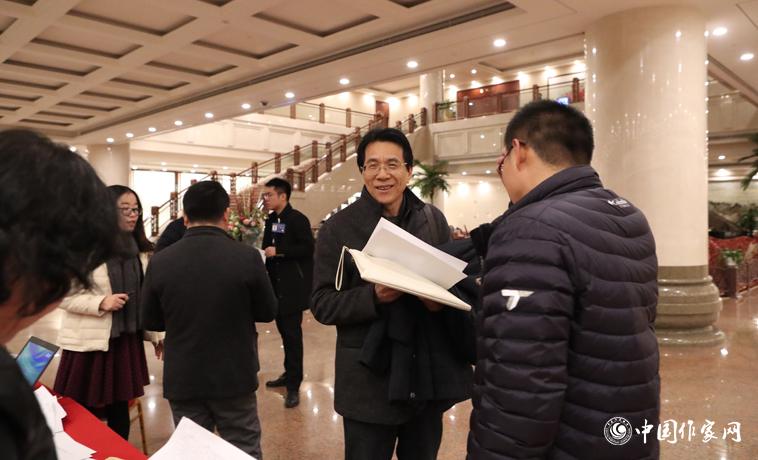11月27日,中國作協(xié)第九次全國代表大會(huì)與會(huì)代表何建明報(bào)到。