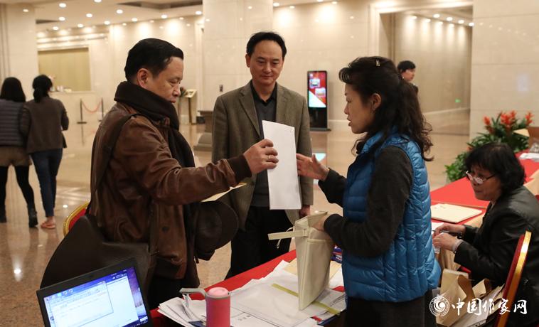 11月27日,中國作協(xié)第九次全國代表大會(huì)與會(huì)代表白庚勝報(bào)到。