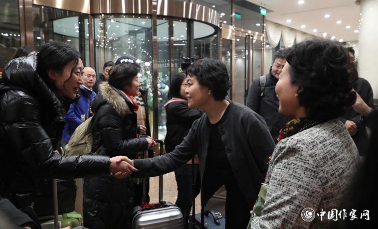 11月28日,中國作協(xié)主席鐵凝、副主席何建明迎接上海代表團(tuán)。