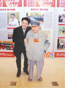 代表與美術(shù)家劉文西在展覽現(xiàn)場合影 中國藝術(shù)報(bào)記者 金濤 攝