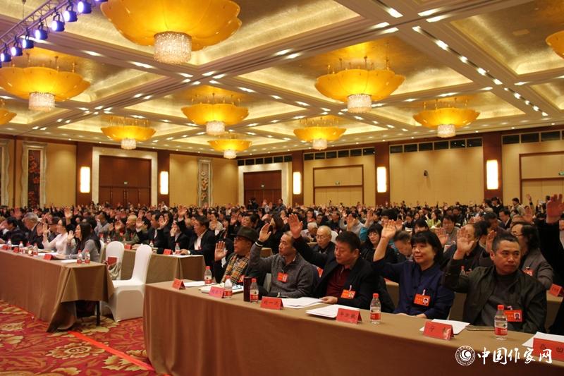 12月2日上午,在中國作家協(xié)會第九次全國代表大會第三次全體會議上,代表們舉手表決。