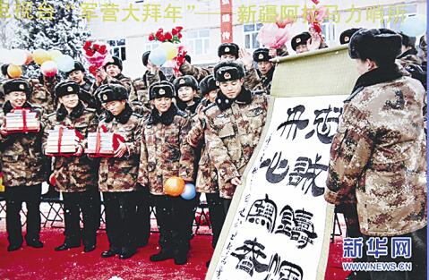 劉建武的書法作品被中央電視臺(tái)軍事頻道《軍營大拜年》欄目組贈(zèng)送給新疆阿拉馬力哨所官兵。資料圖片