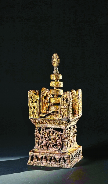 ②銅鎏金阿育王塔