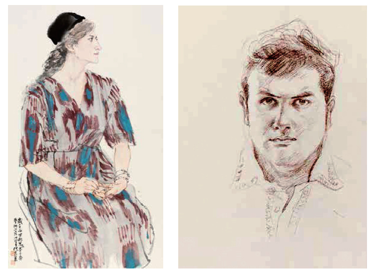 要想體會這個民族的情感,就一定要聽他們的民歌。過去我每到一個地方,都要聽當(dāng)?shù)氐拿窀韬偷胤綉?。在新疆的一路上,也是在車?yán)锊シ胖患患摹妒究贰?,這是匯集了詩、歌、樂、舞、奏、唱于一體的維吾爾族音樂,把維吾爾民族的蒼涼與歡樂的情感全部展現(xiàn)了出來,讓我們更準(zhǔn)確地把握住維吾爾族的基調(diào),了解和體會新疆維吾爾民族的歷史和情感。到了塔縣自然要聽塔吉克民歌了,聽音樂是體會民風(fēng)民俗情感內(nèi)涵的有效方法,也給我?guī)砹似婷畹捏w驗(yàn),就像這次在塔什庫爾干發(fā)生的趣事。在古爾邦節(jié)的聚會上,我見到了兩個漂亮的姐妹,她們長得很美,分別身著自己縫制的粉紅色和玫瑰紅的民族服裝。盡管姐妹倆都是農(nóng)村姑娘,但善良與樸實(shí)之外,還具有著高貴的氣質(zhì)。聚會結(jié)束后,村長幫我們在村子里找到了姐妹倆,我們激動地分別畫起了她們。有意思的是,我在寫生的過程中,隱隱約約飄來一陣陣歐洲的交響音樂,在音樂的伴隨下,更激發(fā)了我對他們的理解和縈繞在心里的那股藝術(shù)的情感。我似乎身臨古代的歐洲,完成著如古典大師般的寫生工作,情緒特別高昂,儼然在畫一幅古典美人。這音樂好像是從窗外傳來的,我禁不住問姐妹倆:“你們村子里平時就播放這類音樂嗎?”她們說:“是的?!蔽覇枺骸澳銈兿矚g聽嗎?”她們說:“特別喜歡,平時我們也聽?!蔽冶簧钌畹馗袆恿?!實(shí)際上,這個音樂是從我的手機(jī)里發(fā)出來的,不知道怎么就碰到了音樂播放鍵。盡管是虛晃一槍,但是音樂所帶給我在畫這位姐姐時所發(fā)揮的情緒激發(fā)出了美的情愫,使我更準(zhǔn)確地把握住對象的審美內(nèi)涵,音樂與我所描繪的對象感覺是何等的吻合!這真是天意呀!