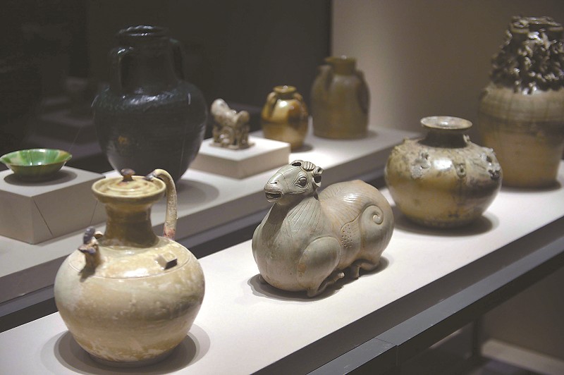 天府之國與海上絲綢之路展品,中間為羊形插器。