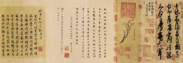 《三希堂法帖》之“三希”在近代的戰(zhàn)亂中,經(jīng)歷了顛沛流離, 《中秋帖》與《伯遠帖》在遭遇動蕩離宮之后,四易其主,最終在27年之后于1951年又歸藏于北京故宮博物院至今,而命運多舛的《快雪時晴帖》最終漂泊了大半個中國,流落至千里之外的臺北“故宮博物院” ?,F(xiàn)如今,三希堂依舊面貌未變,而世傳的“三?!狈ㄌ麉s無法再聚首,南北遙望,惺惺相惜,相互思念,不禁令人慨嘆。2010年,在海峽兩岸授權(quán)之下,讓有三百年歷史的古書畫老字號——榮寶齋,采用高仿工藝,原作規(guī)制,實現(xiàn)“三希”的重聚,終得安慰。