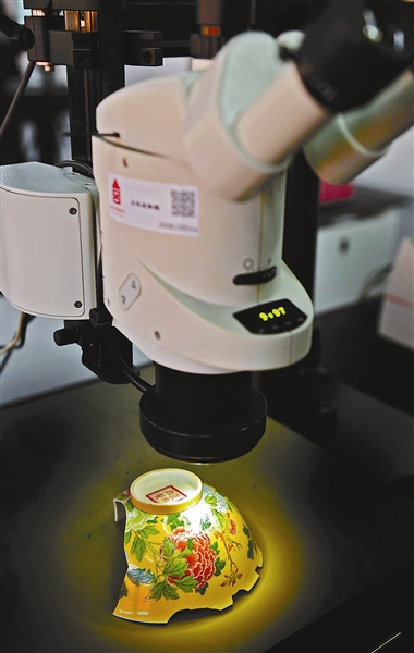 ▲高倍率顯微鏡用以觀測文物細節(jié)