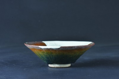 建窯窯址位于福建省建陽縣,燒瓷時間上自晚唐、五代,下至宋元,品種有青釉、黑釉、青白釉等。其中以北宋時期黑釉盞最為有名,胎土富含鐵質(zhì),呈黑紫色。造型有斂口、敞口等不同形式,圈足小而淺。器物內(nèi)外施釉,外壁施釉近足部,有垂流現(xiàn)象。兔毫斑、鷓鴣斑、曜變等釉色的茶盞最為名貴。窯址出土有“供御”、“進盞”字銘的盞,是北宋后期為宮廷燒造的御用茶盞。建盞在當(dāng)時即已很名貴,考古發(fā)現(xiàn)的數(shù)量很少,青龍鎮(zhèn)遺址出土了20余件建盞,也可說明此地當(dāng)年的繁華程度。茶道傳入日本以后,黑釉器在日本受到熱烈的追捧,這其中以建盞及仿燒建盞的茶盞最受歡迎。南宋以后,茶道已經(jīng)不流行用黑釉器,但日本還是非常喜歡,韓國新安元代沉船出土了一批建盞,當(dāng)時建窯已經(jīng)停燒,日本人采購了一批二手的建盞販賣至日本,不幸的是在中途靠近韓國新安的海岸沉沒。