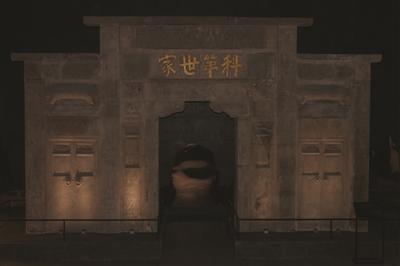 館內(nèi)打頭的文物是一座明代的“科第世家”石門樓。這座三開門式門樓,為明代開科第一位從南京走出來的狀元吳伯宗家族所有。它采取的都是典型的明代石雕工藝,從這柿蒂紋門環(huán)首就可以看出明代石雕藝術(shù)的精美。最上面圖案是捷報(bào)頻傳,說的是中了狀元,府報(bào)、省報(bào)、京報(bào)一路聯(lián)捷喜報(bào)綿綿,好一番熱鬧景象。門額四個大字“科第世家”展示的此家是科舉中第的世代家族。如此這般大體量的門樓套,彰顯的是一個家族的世代興旺?!澳壳叭珖鞯亟ㄔO(shè)新農(nóng)村,許多古代房子都已翻蓋,像這樣的明代好門樓套能異地保存下來,實(shí)屬不容易?!壁w久明說。