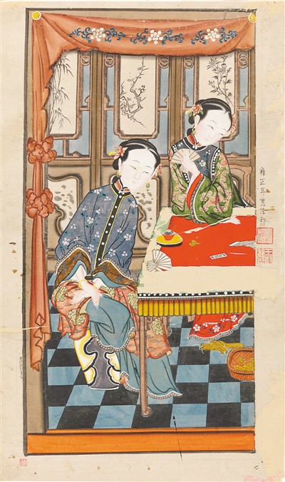 例如印制于清康熙時(shí)期的《四藝雅聚》《太白醉酒》《四季平安》,雍正時(shí)期的《加冠仕女圖》《葉戲仕女圖》,乾隆時(shí)期的《百花公主》《韓湘獻(xiàn)籃》《五福三星》,嘉慶時(shí)期的《暖香塢雅制春燈謎》《時(shí)遷盜甲》《游園驚夢》《呼丕顯下邊庭捉拿潘美》《打龍袍》,以及道光時(shí)期的《莊稼忙》《福壽平安》等,都是現(xiàn)有存世的孤本。