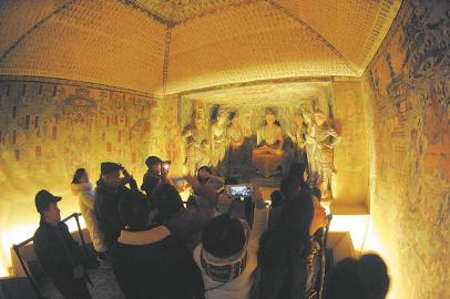 春節(jié)期間,眾多游客在成都博物館參觀“絲路之魂·敦煌藝術(shù)大展暨天府之國與絲綢之路文物特展”。 本報記者 衡昌輝 攝