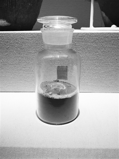 在河北博物院三樓河北商代文明展廳里,展柜中一個(gè)透明的玻璃密封瓶和瓶中裝的一些灰白色水銹狀物質(zhì),看起來(lái)很不起眼。然而,這瓶貌不驚人的文物,實(shí)際上卻保持著一項(xiàng)特殊的“世界紀(jì)錄”。