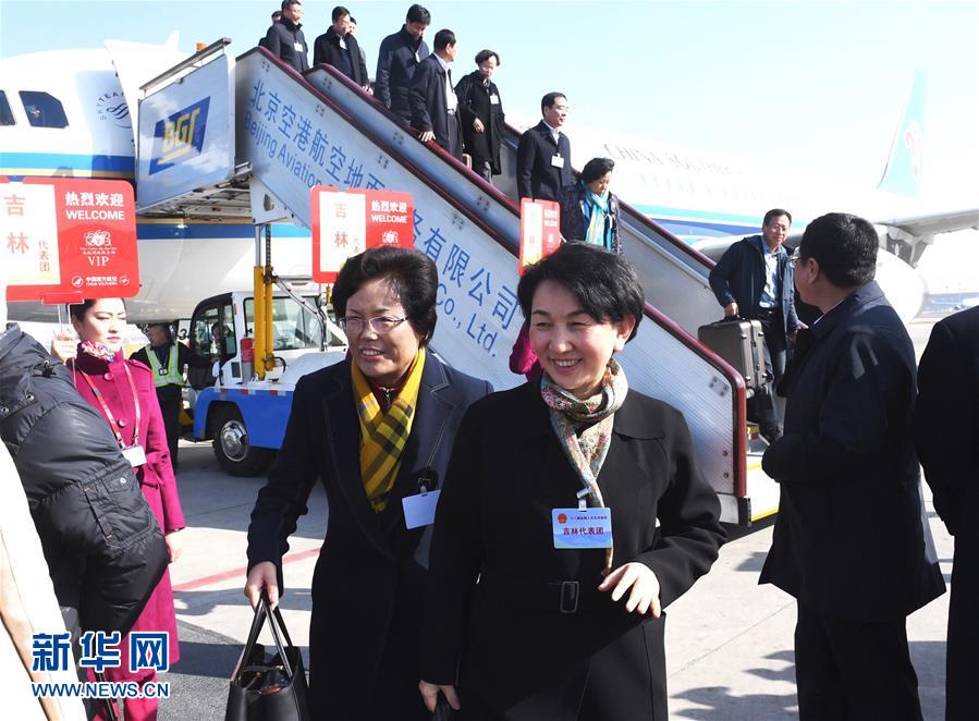 3月2日,出席十二屆全國人大五次會議的吉林代表團乘飛機抵達北京。新華社記者趙穎全攝