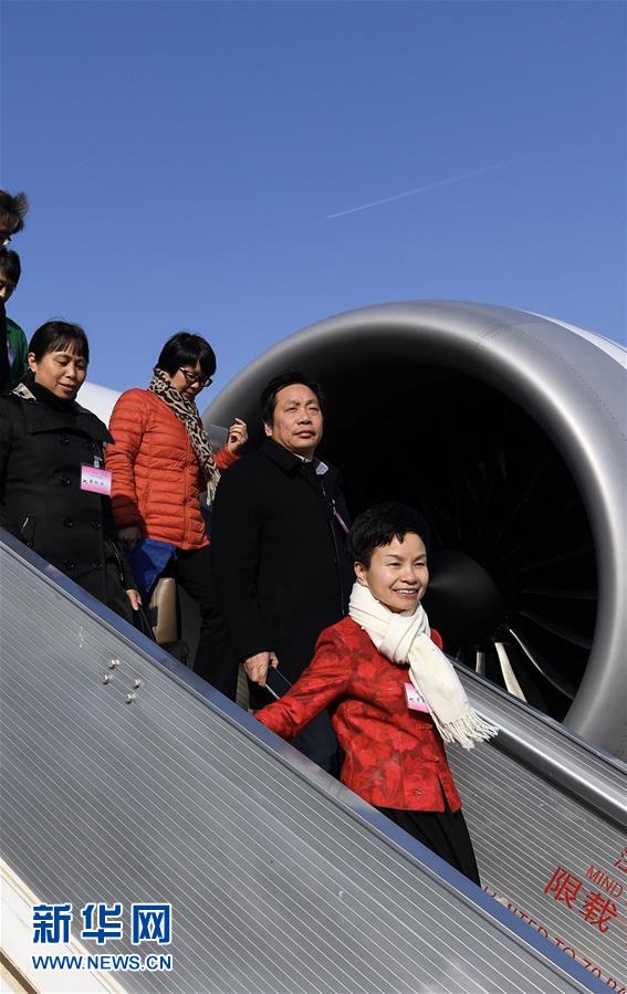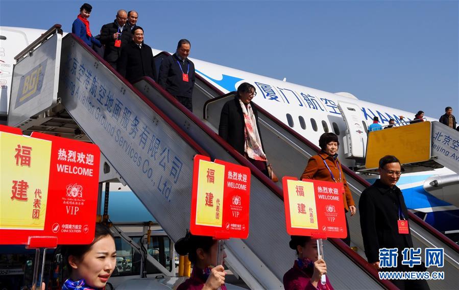 3月2日,出席十二屆全國人大五次會議的福建代表團乘坐飛機抵達北京。新華社記者趙穎全攝