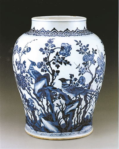 此外,一件清代初期的青花瓷罐,罐身上畫有牡丹,花叢中有兩只雉雞相互顧盼。畫法工整、傳神。牡丹以雍容富麗的花姿號稱百花之王,寓意富貴;雞與“吉”諧音,有吉祥之意。另一件延慶出土的清代粉彩斗雞碗,雄雞邁步向前,黑色尾羽翹張開來,后跟一雛雞,前面一童子作邀斗狀。紅色雞冠、黃色雞喙、黑色雞尾、藍(lán)色雞翅,都點綴得恰到好處。雖為斗雞,但毫無緊張之氣,而是其樂融融。