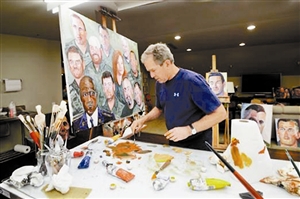 美國著名藝術(shù)評論家薩爾茨關(guān)于小布什“無天賦的人能做到的最好程度”到底客觀么?綜合以往的事例來看,似乎有些道理。不僅小布什的妻子和母親對小布什的繪畫作品不滿意,小布什生命中的其他女性似乎都對他的畫作不滿意。據(jù)小布什稱,他曾經(jīng)也給她的一個女兒畫過像,但她也不喜歡?!耙虼宋揖桶涯欠嬋恿?。”小布什說。不過,小布什隨后又改口說:“我可能還留著那幅畫,盡管她們很可能認(rèn)為我已經(jīng)將其銷毀?!睆恼?wù)繁忙的總統(tǒng)到歸于平靜的“畫家”,小布什說他很享受從繪畫中獲得的那種目的感。