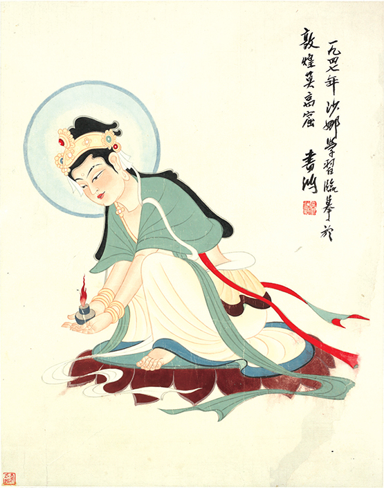 我在少年時(shí)代(1943年)就跟隨父母常書鴻、陳芝秀在敦煌莫高窟開始了特殊的學(xué)習(xí)經(jīng)歷,跟著前輩們?cè)诙纯邇?nèi)學(xué)習(xí)臨摹壁畫,練就了臨摹的“童子功”。1951年,我有緣在父親影響下,在北京清華大學(xué)營建系,留在梁思成、林徽因身邊,得到對(duì)傳統(tǒng)工藝美術(shù)發(fā)展設(shè)計(jì)的啟蒙,開發(fā)北京景泰藍(lán)的新設(shè)計(jì),與敦煌圖案元素相融合,從此決定了我終生從事裝飾設(shè)計(jì)和教學(xué)的事業(yè)。