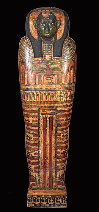 序言部分僅有的第000號(hào)展品是一套屬于古埃及女貴族佘盆梅海特的的木棺。這件制作于公元前600年的木棺初看起來(lái)和常見(jiàn)的古埃及木棺并無(wú)二致,但是經(jīng)過(guò)分析研究人們發(fā)現(xiàn),它的全部材料都來(lái)自埃及以外的地區(qū):木料來(lái)自于黎巴嫩,黃金來(lái)自努比亞,青金石來(lái)自阿富汗,瀝青來(lái)自?xún)珊恿饔颉U褂[試圖通過(guò)該木棺向觀(guān)眾表達(dá)這樣的理念,在早期文明時(shí)代,世界范圍內(nèi)的交流合作已經(jīng)成為普遍現(xiàn)象。