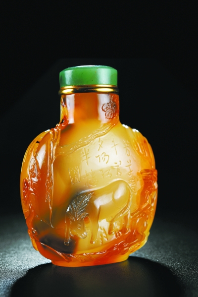 中鴻信春拍首次推出“如熏”清代鼻煙壺專場,按照裝飾紋樣推出溯源、化物、祥瑞、千顏、刻畫、歸屬六個專題板塊,共呈現(xiàn)各式鼻煙壺八十余件。鼻煙壺的材質(zhì)、工藝頗具特色,囊括了山東博山的料器、廣州的牙器琺瑯、蘇作的玉石瑪瑙、揚州的套料雕漆、景德鎮(zhèn)的瓷器等。清宮造辦處的琺瑯作、玉作、玻璃廠、牙作、漆作都成為鼻煙壺的制作中心。鼻煙壺豐富的材質(zhì)、精湛的工藝,濃縮了中國傳統(tǒng)工藝美術(shù)的精髓。
