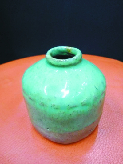 “雖然有的宜興紫砂壺掛了釉,但紫砂壺的底部是露胎的,不會(huì)把釉掛滿。紫砂有透氣性,不能全部封死。”朱銀木指著手中明晚期的水呈說。這只水呈是白砂掛月白釉,古樸典雅,高十厘米,寬八厘米,精致小巧,拿在手中十分輕盈。它在文人墨客的案桌上經(jīng)歷了漫長的歲月洗禮,光澤依舊。